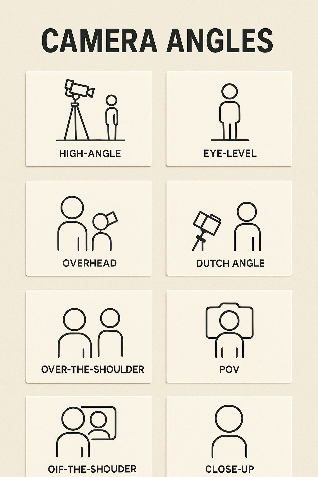 Camera angles determine the position of the viewer relative to the subject. This position affects how we interpret the scene—whether it’s conveying dominance, vulnerability, chaos, intimacy, or detachment.